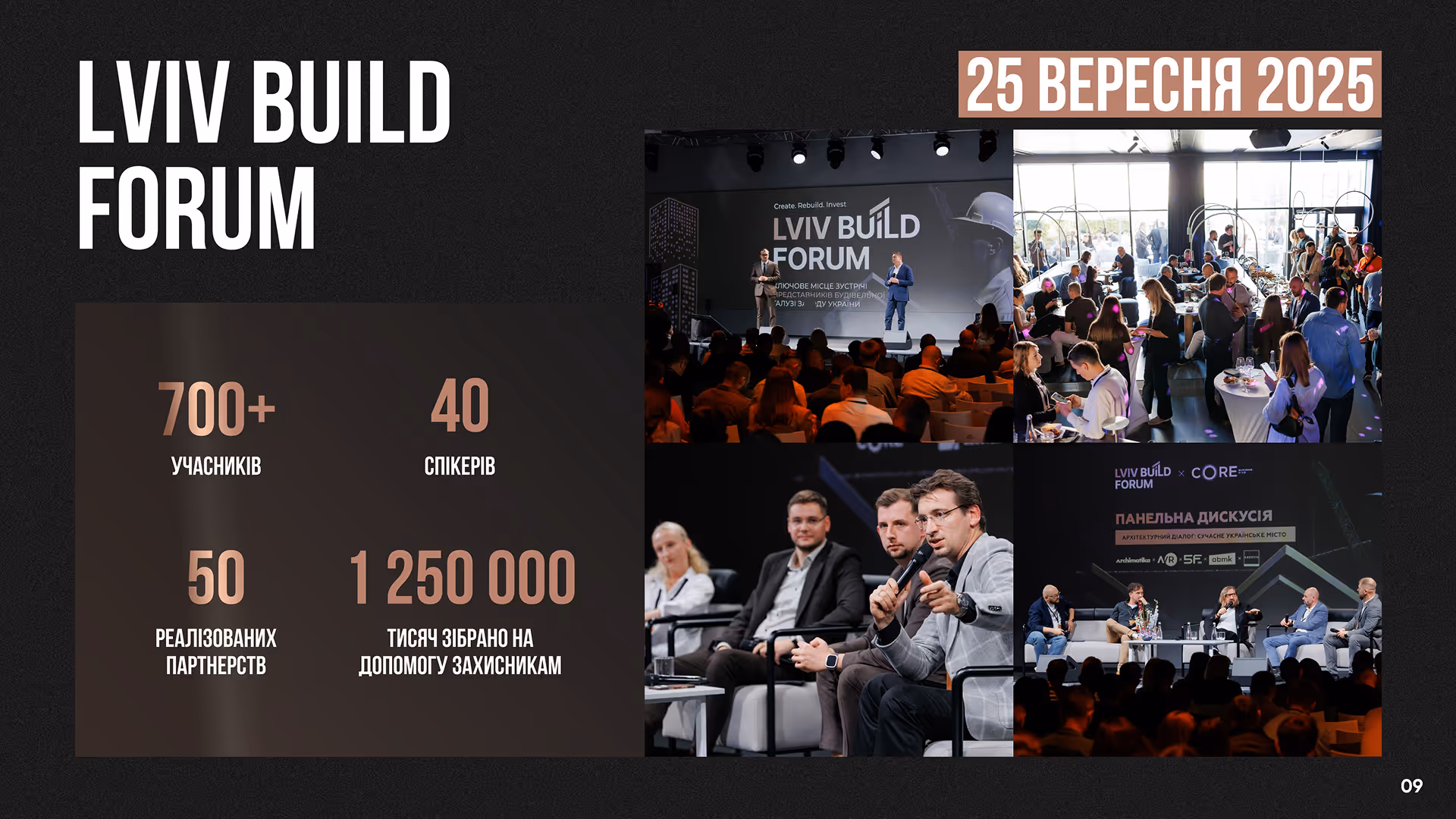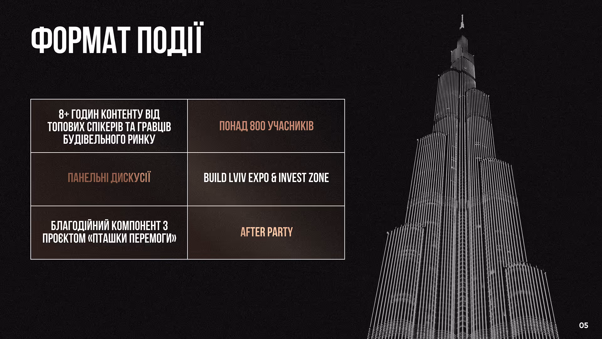 Це майданчик для чесного діалогу топ-гравців ринку, нових партнерств та сміливих рішень у сфері житлового, комерційного та інфраструктурного будівництва